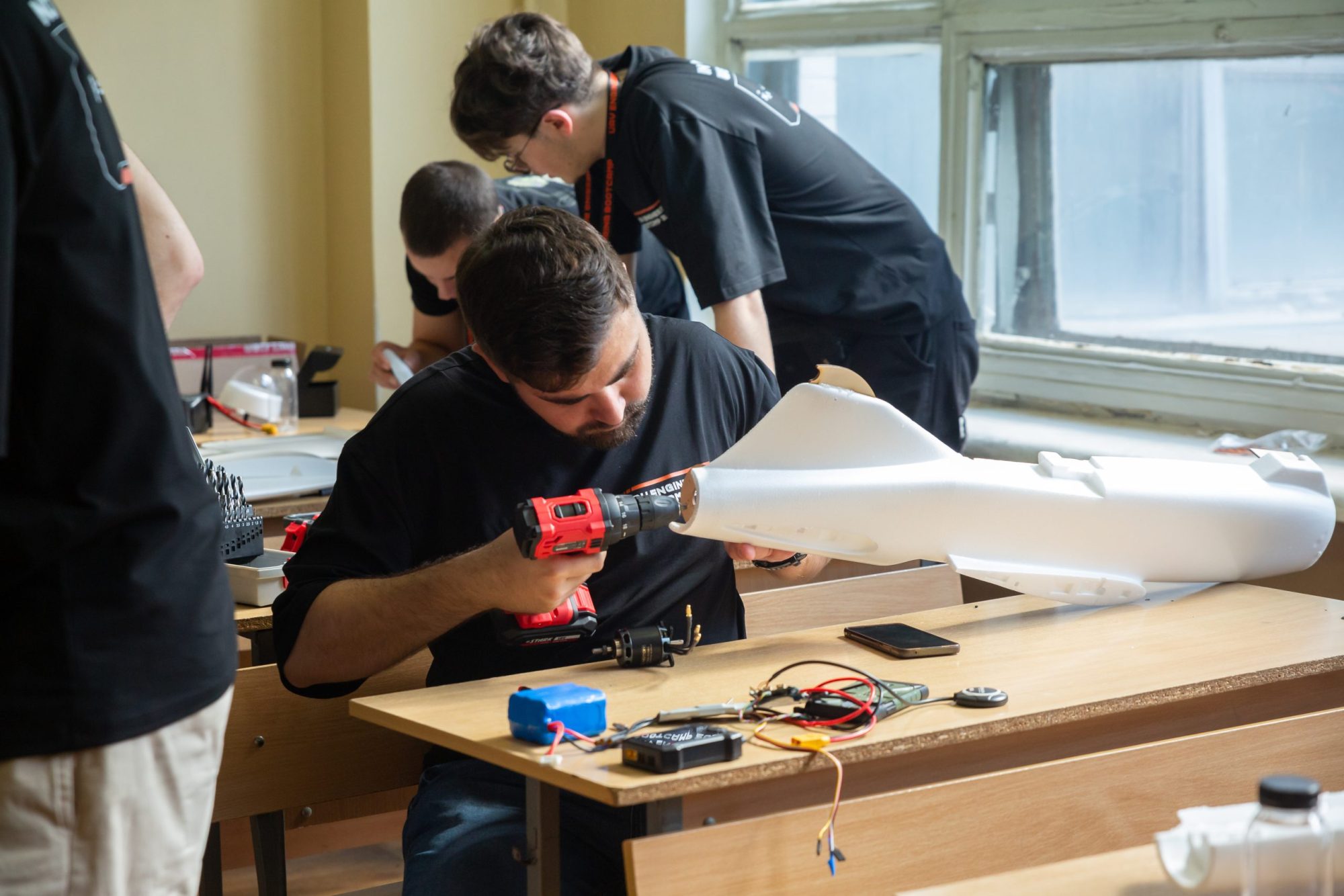 Щоранку — лекції інженерів компаній про зв’язок у бойових умовах, принципи автопілотів і композити. Далі — лабораторії, експерименти, налаштування контролерів і випробування в аеродинамічній трубі КАІ.
