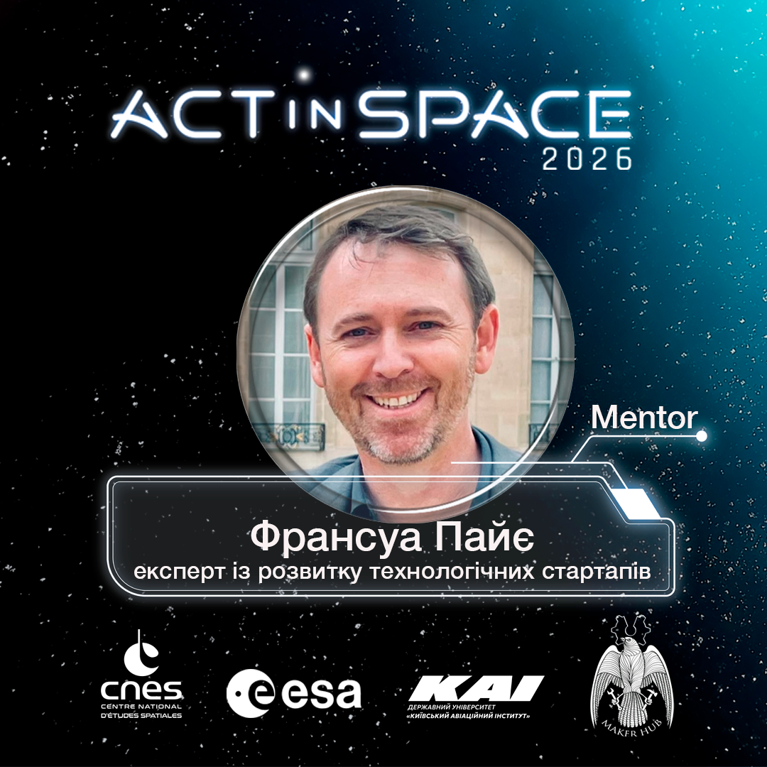 Для ActInSpace Франсуа буде наставником команд, щоб швидко перейти від концепції до переконливого бізнес-кейсу та презентації, зосередившись на практичній реалізації та реальному впливі космічних технологій.