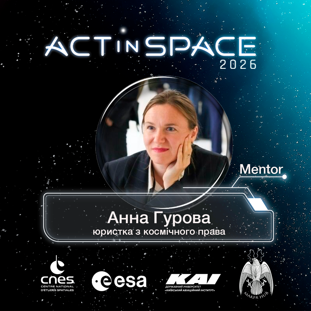 Космічна юристка, яка працює на перетині міжнародного космічного права, регуляторної політики та інновацій. Вона допомагає командам і організаціям орієнтуватися в складних правових питаннях космічної індустрії – від ліцензування та відповідальності до міжнародної співпраці й трансферу технологій.