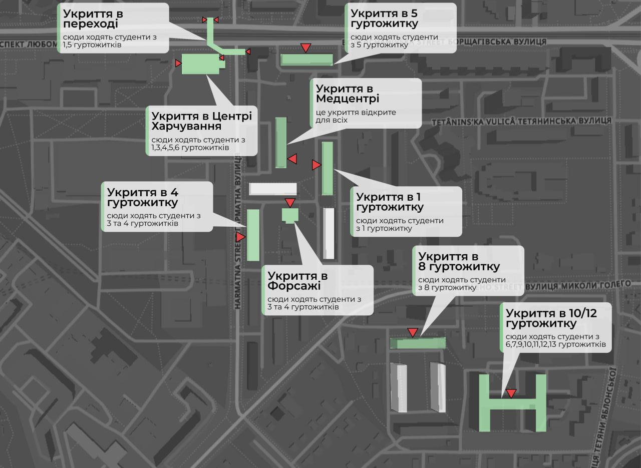 Також додаємо мапу укриттів на кампусі для зручної навігації.